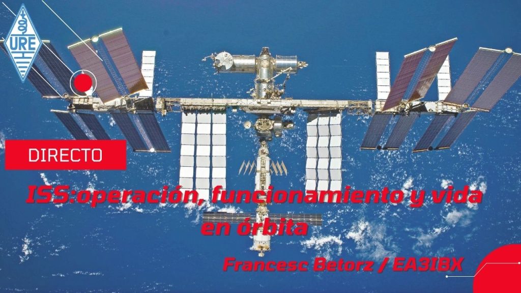 El próximo miércoles 8 de abril a las 19:30 EA-Peninsular (CEST), 17:30 UTC, se transmitirá por el canal YouTube de URE la charla “ISS: operación, funcionamiento y vida en órbita”, en la que participará nuestro colega Francesc Betorz (EA3IBX). Como siempre, podréis seguir la charla en: