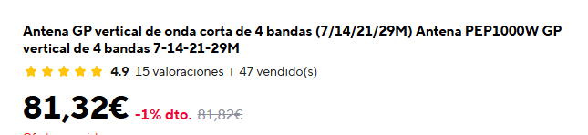 PD. Si compras dos, puedes hacer un dipolo rígido, cuatro bandas, y te ahorras los radiales.