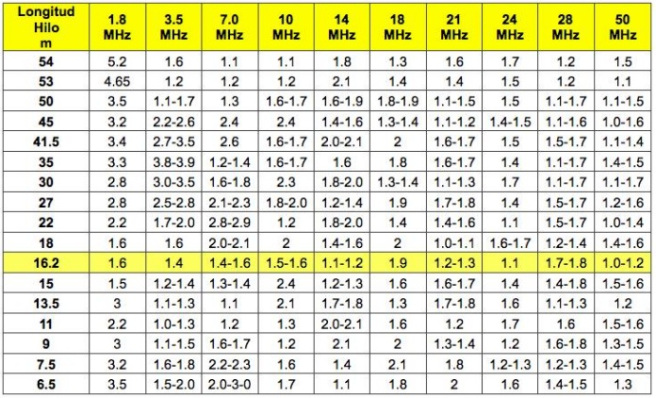 Por otra parte, una antena de hilo EFHW alimentada por un extremo mediante un UNUN 49:1, requiere una longitud de unos 20 m para su correcto funcionamiento.