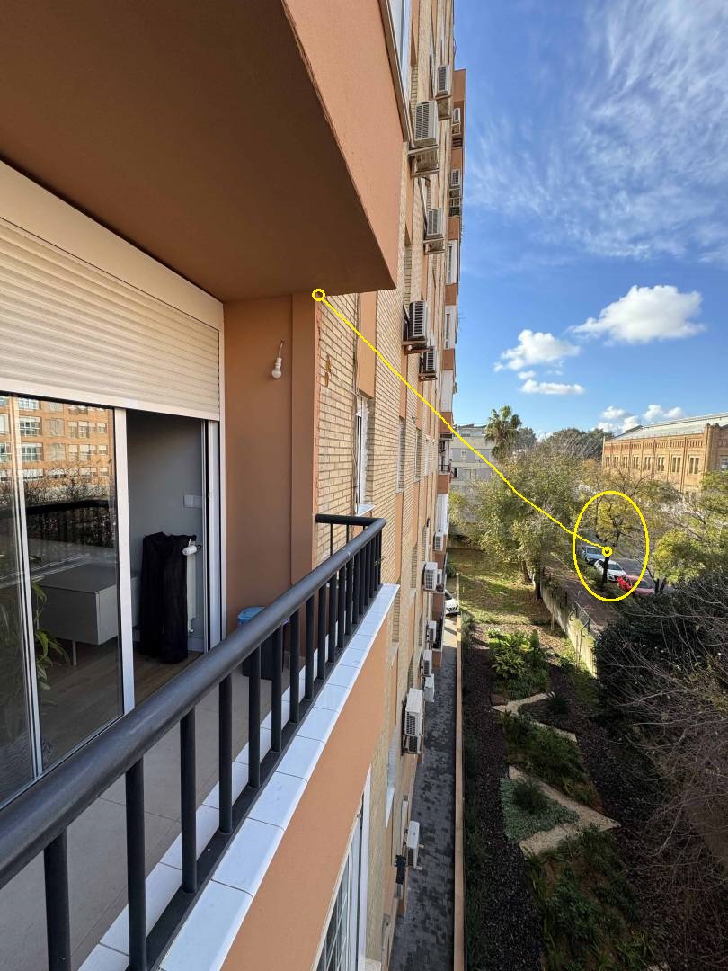 • El hilo discurriría pegado a la fachada del propio piso, en forma de “U horizontal” a lo largo de 3 ventanas de la fachada