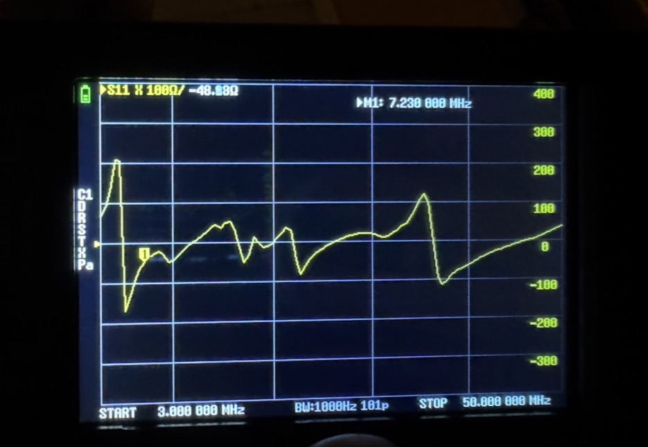 Esto lo medí calibrando el VNA al final del cable coaxial. Luego hice otra medida de ROE tras el choke y los valores de ROE variaban 🤦🏻♂️ así que acepté que a pesar del choke el coaxial actuaría también de contra-antena 🤷🏻♂️