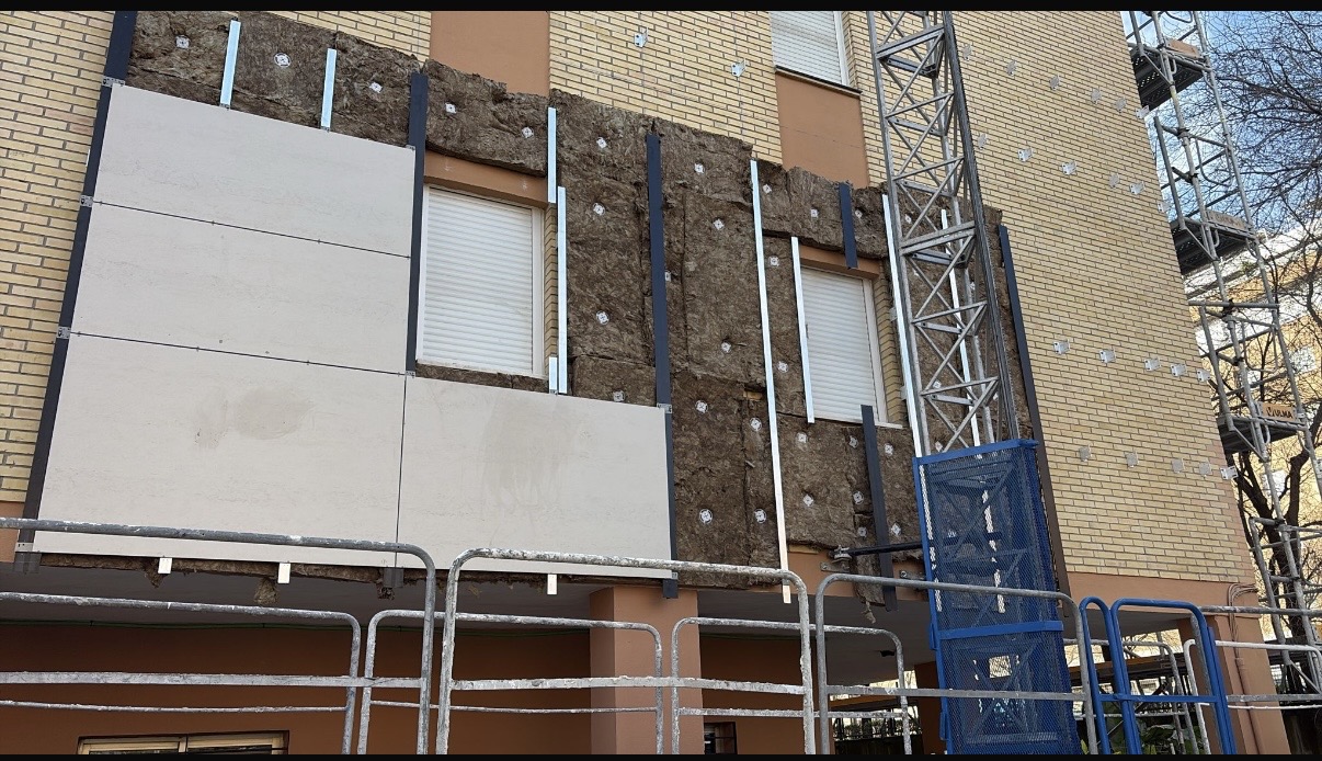 La separación se hace más necesaria aún ahora que van están tapando los ladrillos con placas de cerámicos sobre rieles de aluminio.