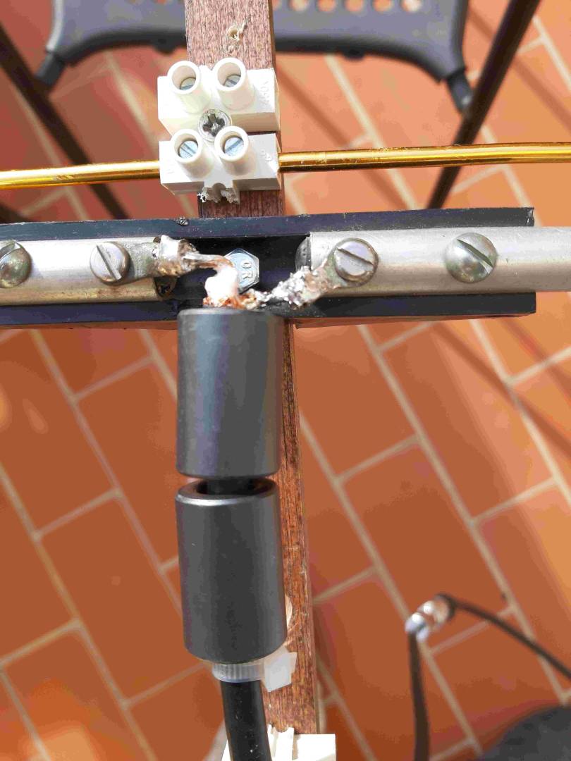 Esa distancia que te he marcado en rojo, debe ser lo más corta que puedas, pues desde donde acaba la malla del coaxial ya empieza a radiar, ya es parte del elemento excitado.