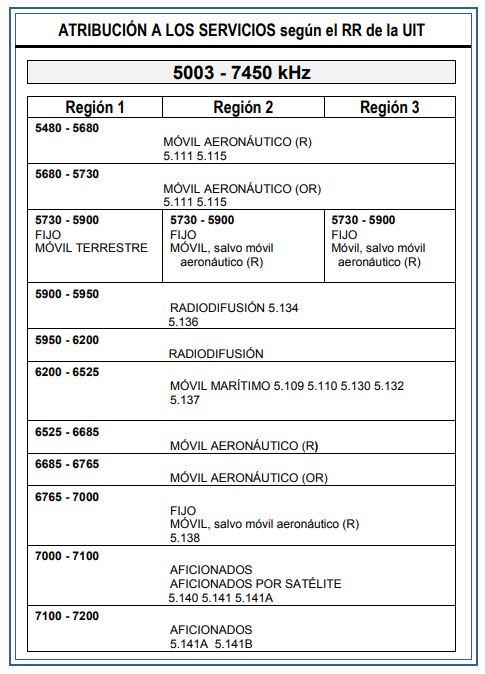 Una cosa es lo que la ITU ordena, típicamente límites de banda y, en su caso, atribuciones internas para determinados servicios (en nuestro caso el CNAF).