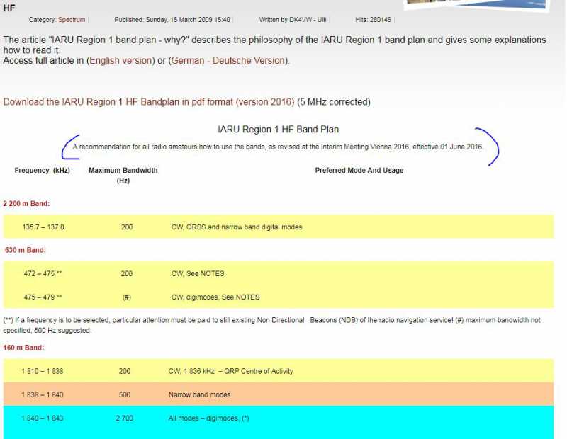 Peeeeeeero ADEMÁS de las "recomendaciones" de IARU, la reglamentación de cada país puede "forzar" y hacer "obligatorios" estos planes de banda. En nuestro caso, el reglamento es claro, ya que dicta así: