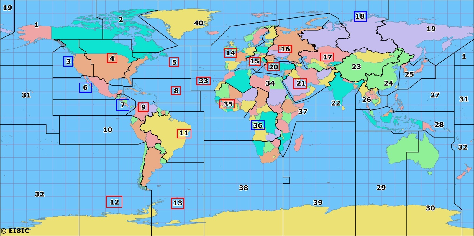 Adjunto mapa con las zonas contactadas (R) y escuchadas (A)