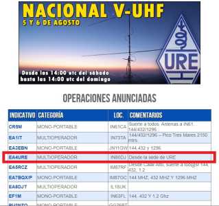 - Se espera la activación de la EA4URE con motivo de este concurso por parte de la sección local de Madrid y responsables de la estación URE Central durante el Domingo 6 de Agosto.