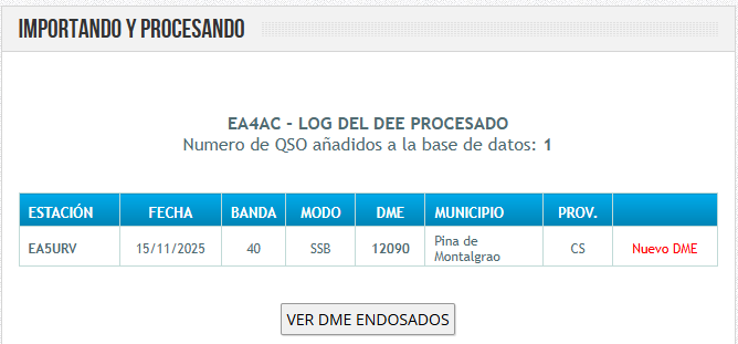 Tu log EA5JPW desde la referencia DME 30027 (Molina de Segura), ha sido endosado a todos los participantes del diploma y fue cargado en GDURE