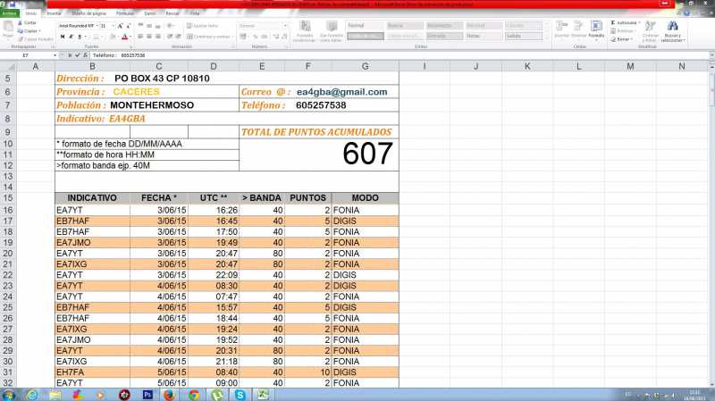 Sólo se podrá hacer un contacto por día banda y modo con cada una de las