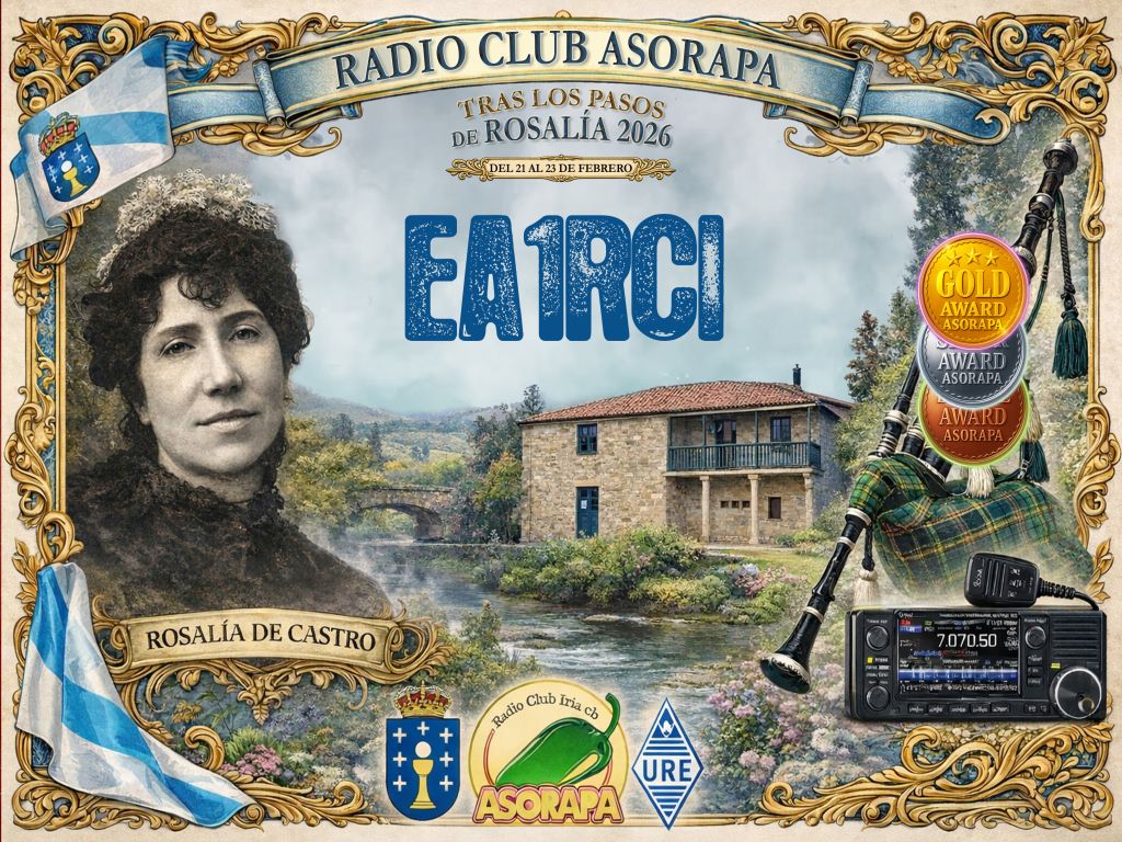 Diploma “Tras as pegadas de Rosalía” (Tras las huellas de Rosalía), ha sido pensado para promover, a través de la Radioafición, la figura de la escritora gallega Rosalía de Castro, conociendo los lugares significativos que marcaron su biografía, así como su obra literaria y su legado.