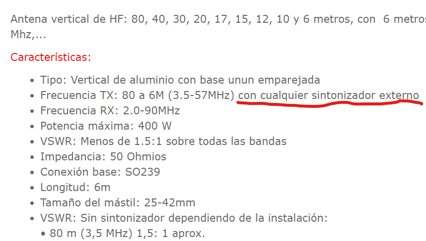 Hola José Luis. No, si tengo una antena cob web 5 bandas sin acoplarla que yo me hice y también un dipolo no resonante DNR con balun 4:1, multibanda, con acoplador. De momento trabajo bastante bien dentro de lo que cabe. Mi pregunta inicial era si alguien tenia o había experimentado con esta antena vertical, y si le gustaba o no, pero veo que como es bastante nueva, no hay nadie que haya experimentado con esta antena todavía. Esa era mi pregunta. Yo suelo trabajar DX en fonia y en digitales y quería saber si funcionaba bien en DX por aquello de ser vertical y tener una antena por banda con bajo ángulo de radiación. Las otras verticales multibanda con trampas o bobinas no me interesan. Gracias a todos por los consejos.