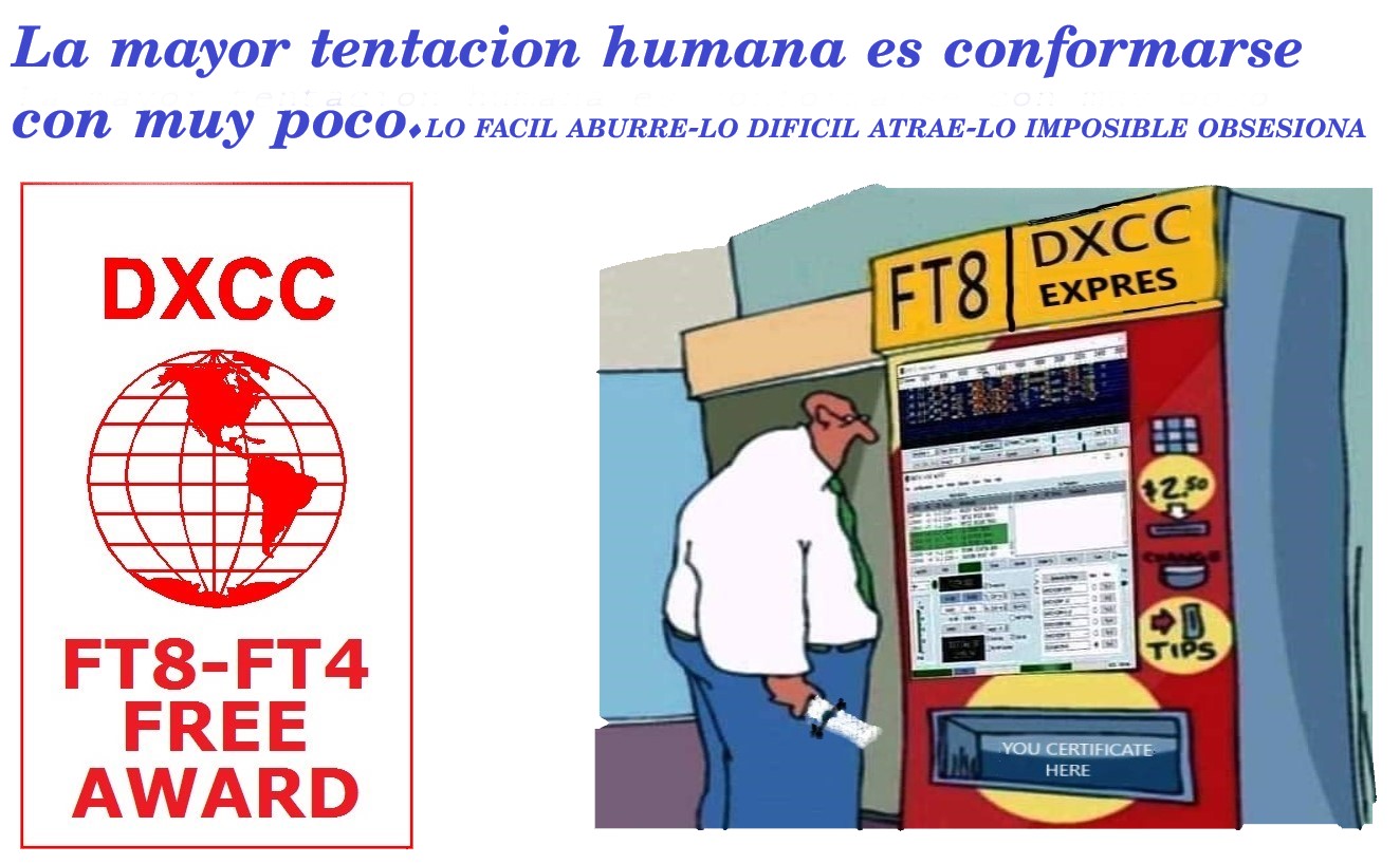 En el supuesto que se hicieran automáticamente como dices, estando fuera de casa, haría contactos que ni me van ni me vienen. Solo hago los contactos que me interesan y cada vez son menos. Así que para hacer un qso en FT8 tengo que buscar, informarme si confirma, y más datos importantes para mí. En cualquier modalidad antes de hacer un contacto me informo, y si sé que no voy a conseguir la QSL, o para conseguirla tengo que pagar y ya tengo confirmado ese país, paso de hacer el contacto. Para mí hacer un contacto por el solo hecho de hacerlo no me sirve, el qso acaba cuando recibo la QSL. Además, genero menos qrm, y no molesto con mis llamadas a los que quieren hacer ese DX, en todos los modos.