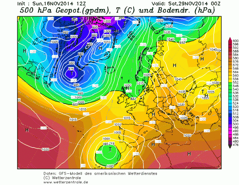 Las borrascas durante lo que resta de mes y principios de diciembre tienden a bajar de latitud, esto es debido a un potente anticiclón euro-asiático que forzara a que las borrascas bajen en exceso de latitud ( Siberia se encuentra demasiado fría).
