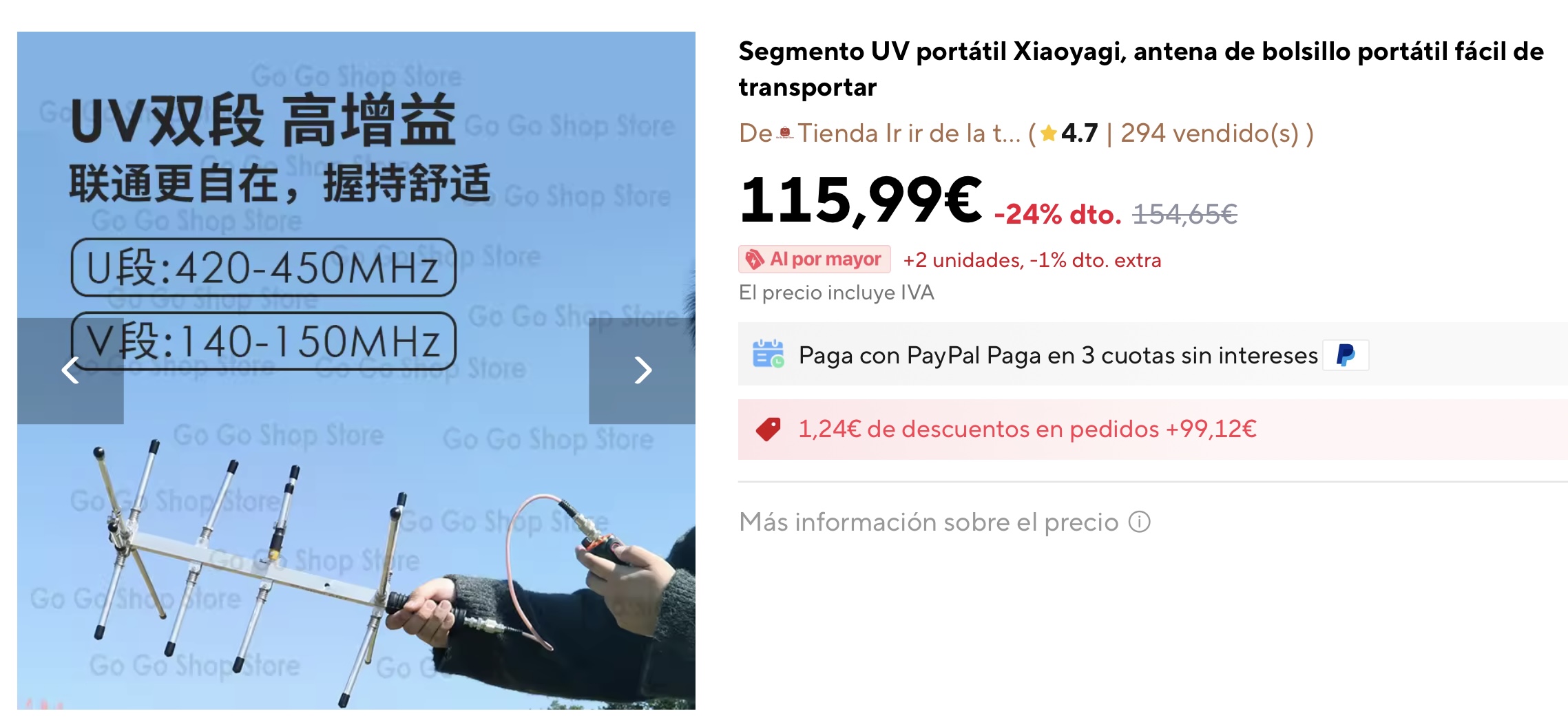 Hola a todos. Soy novato total en este mundillo de los satélites, hasta ahora sólo he usado el repe de FM de la ISS y con una antena vertical omnidireccional. Antes de invertir en antenas y equipos adecuados, me gustaría probar una antena barata de mano, de esas bibandas de polarización circular. Soy más bien manazas, por lo que la quiero comercial, pero solo he encontrado algunas en AliExpress y no me fío mucho: tienen elevados gastos de envío y advierten que la aduana puede cobrar también. Si alguien conoce alguna apropiada le quedaría muy agradecido por informarme. Gracias y 73.
