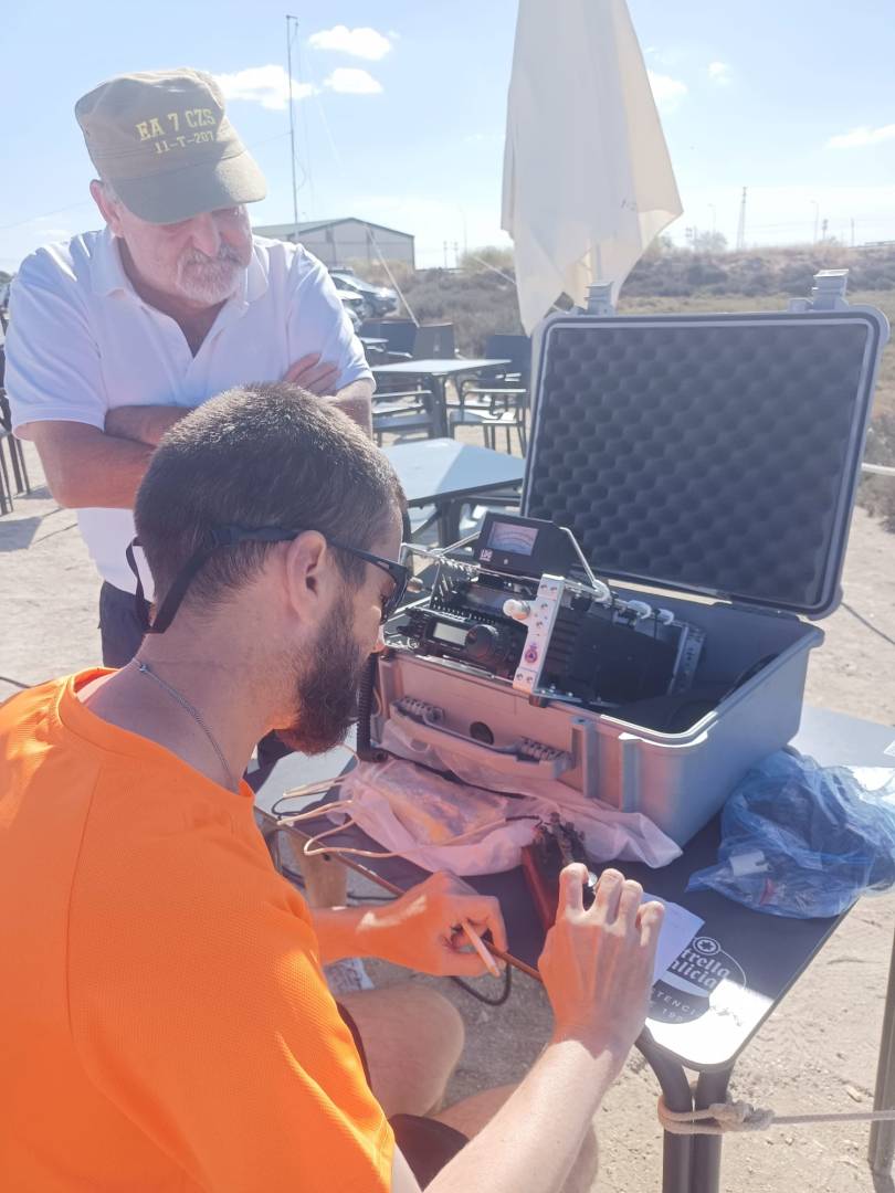 Asimismo se instaló otra emisora de HF con antena vertical para 20 metros, donde los operadores EA7CZS y EA7IVP hicieron los contactos de la EA7URF en la modalidad de CW, ante la atenta mirada de los asistentes más jóvenes.