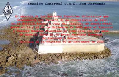 La Sección Comarcal de San Fernando tiene previsto organizar el próximo viernes día 26 de Abril, a las 19,30 horas y en nuestra sede social, una conferencia denominada " EG7BSP BICENTENARIO DE LA BATALLA DE SANCTI PETRI ", impartida por D. Juan Jesús Saucedo, autor del libro de la referida efemérides.