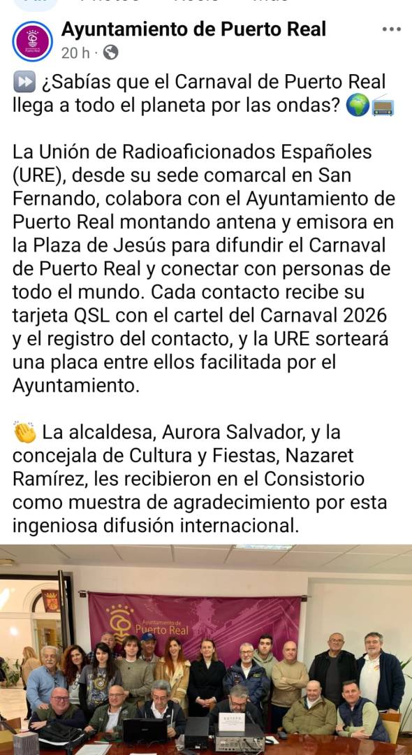 Las redes sociales del Ayuntamiento de Puerto Real se hacen eco de nuestra difusión de EG7CPR.