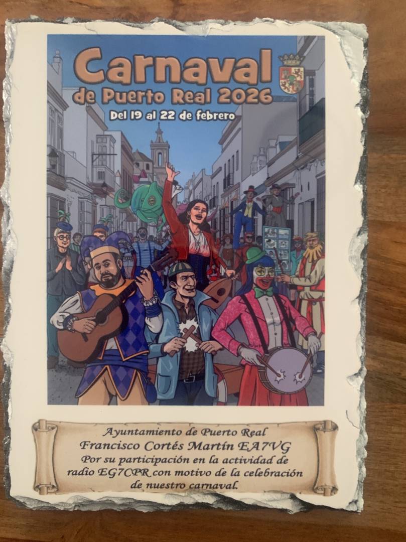 Ya hemos recibido la placa con el cartel del carnaval de Puerto Real 2026, a la espera de poder ser entregada a su ganador EA7VG.
