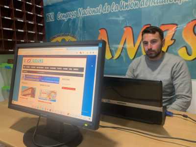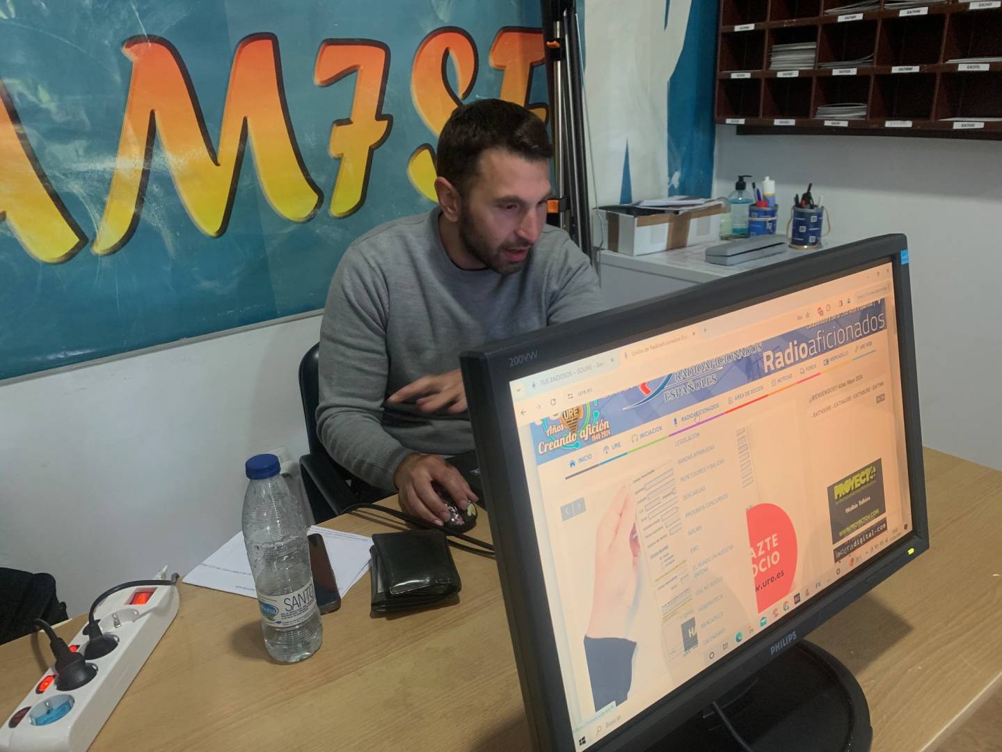Pues llegó el día y aqui tenemos ya a nuestro compañero Sergio EA7ITL comenzando su interesante exposición, en estas fotografias explicando todas las ventajas que tienen para el socio la web de URE.