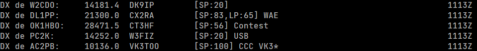 Estoy desarrollando una variante del clúster Telnet basada en DXSpider que enriquece los spots de HF (0–30 MHz) con un indicador de probabilidad de establecer QSO entre el usuario del clúster y la estación DX del spot. Todo lo demás funciona exactamente igual que en un DXSpider tradicional.