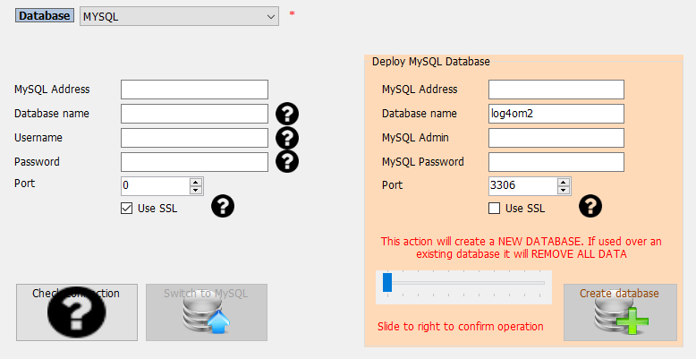 En LOG4OM es solo crear la base de datos en MySQL y aportar los datos que solicita: