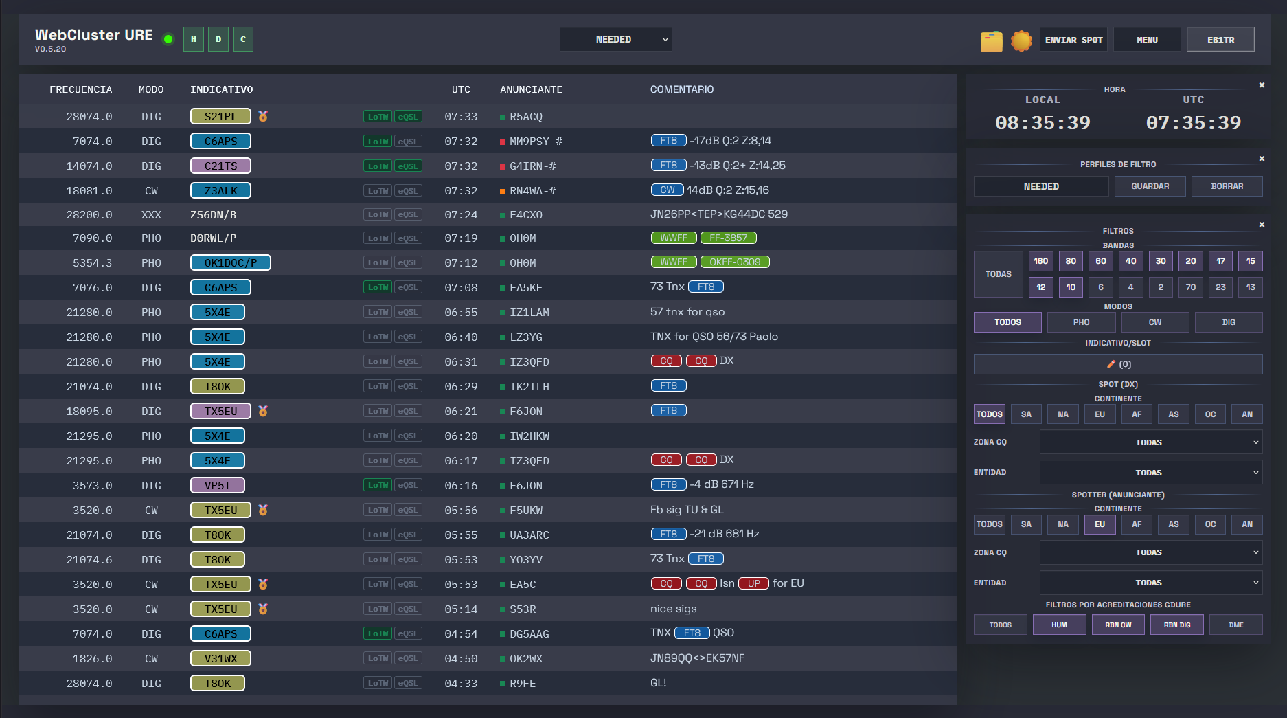 Si, tienes razón, igual es complicado y el problema creo que viene de que yo no me explico bien. Anteriormente pedí el poder buscar un DX en concreto y tampoco me funcionó, menos mal que vino EA5J y lo explicó mejor y ahora lo tenemos (gracias EA5J) y a ti también Fabián y equipo por implementarlo.