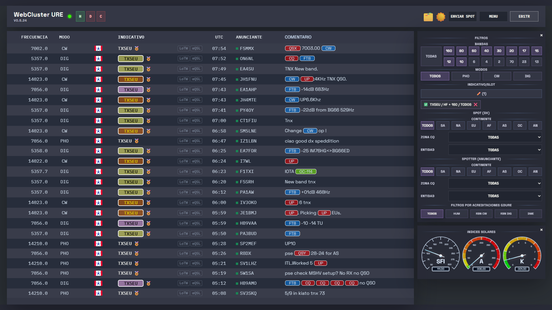 Haces referencia al Dx actual que es TX5EU como que no figura en " LoTW ni eQSL" correcto estoy contigo, pero tampoco figura en "GDURE", por esto digo lo de que debe de ser complicado, no te doy más la vara, perdón.