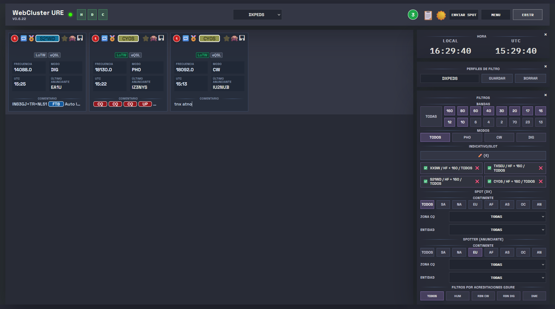 Telnet Clúster EA3CV-2: dxcluster.cronux.net 7300