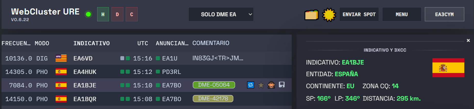 Esta muy bien que se nos avise de un DME cuando alguien pone un anuncio de un MV, C, EE, VG, etc... pero siempre que se anuncia una pota ES-XXXX o ES-xxx, nos da un DME erróneo del principado cuando de todos es sabido que tanto las potas como sotas entre otros, por sus extensiones pueden alcanzar varios municipios por ende dan datos falsos a los cazadores del diploma DME.