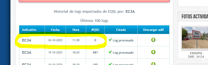 Por los comentarios anteriores de este hilo, me da la impresión que hay algún problema en eQSL. Seguramente han realizado algún cambio y la descarga/sincronización que afecta otros LOG's como puede ser GDURE.