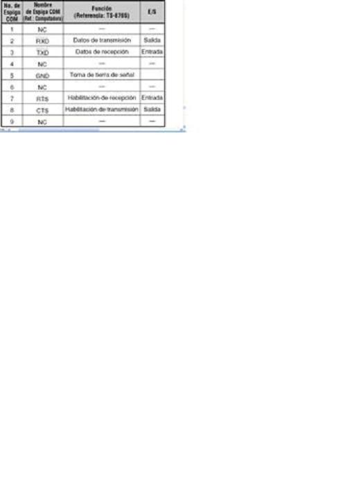 (conductores externos) y de las espigas del conector COM son las siguientes:
