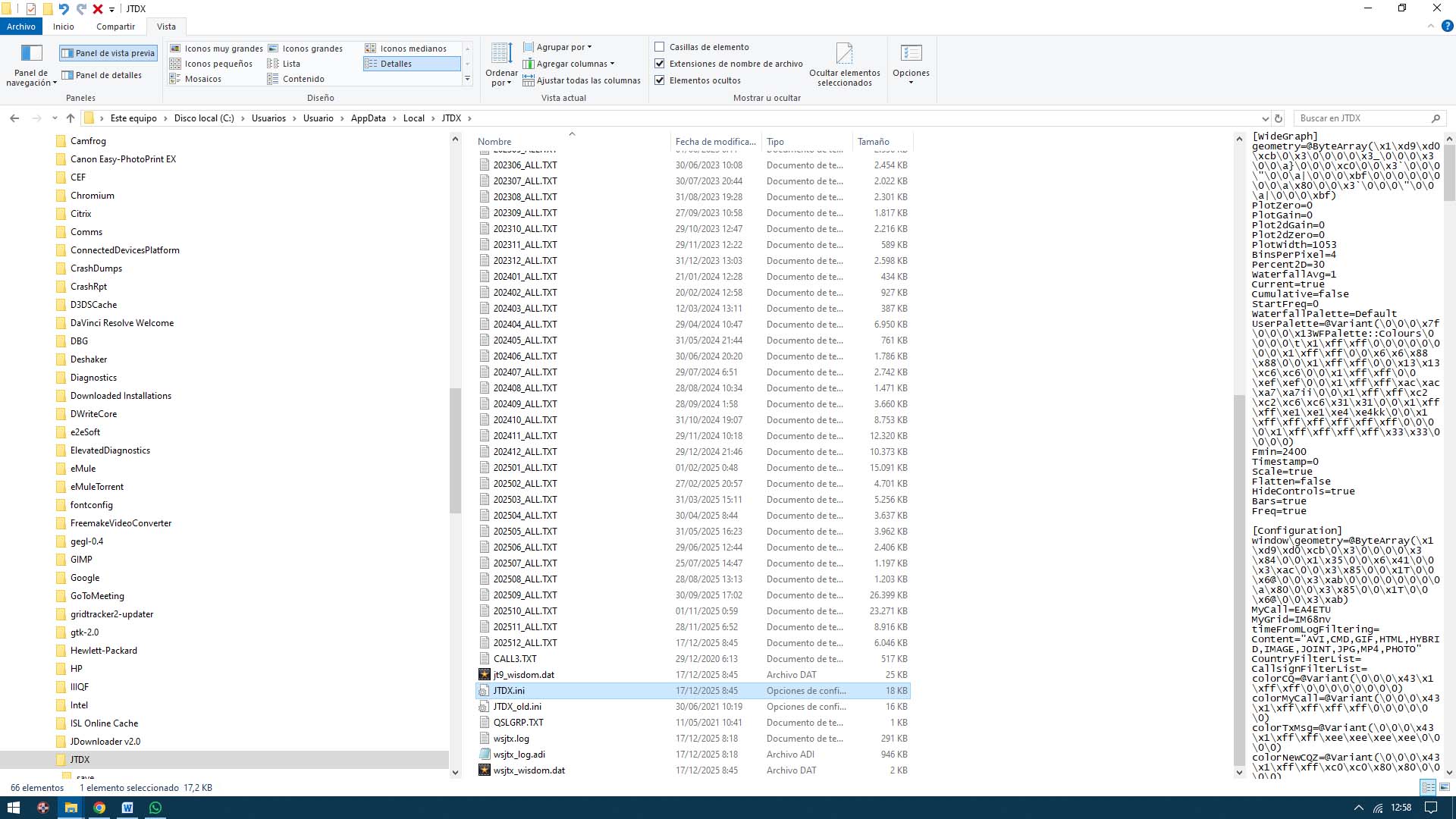 Has de localizar el fichero JTDX.ini y una vez lo hayas encontrado haz una copia de seguridad y lo guardas. Cuando te vuelva a pasar machacas el fichero corrupto por el de la copia de seguridad y a correr. Esta opción quita muchos dolores de cabeza.