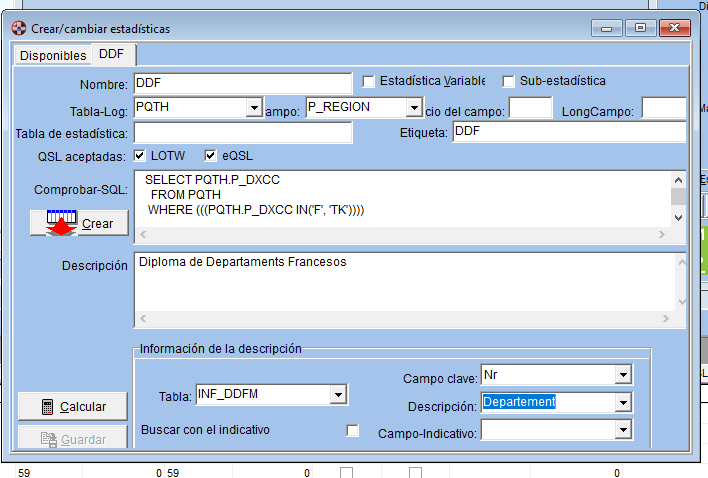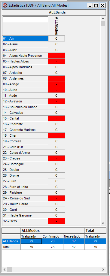La razón es que cuando importé mi libro desde Logger32 los datos del QTH del corresponsal fueron a parar a Región (APP_LOGGER32_STATE=REGION), pero la estadistica DDFM esta asociada al campo P_SUB_REGION y la DPF al P_DIPL_7 y por tanto estos campos estan vacíos