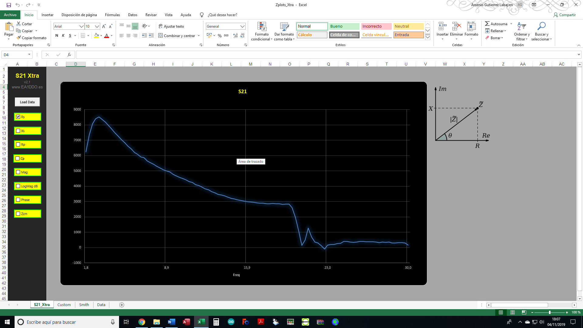 No sé exactamente qué define exactamente Rs en zPlots, pero representa la curva del cálculo de la impedancia vs frecuencia que ofrece el choke basado en los parámetros exportados en formato S21 desde la nanoVNA.