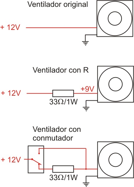 OK GRACIAS POR CONTESTAR ESO DE LA RESISTENCIA SI QUE LLEGO, PERO ALGUIEN ME PUEDE PONER UN DIBUJO DE COMO PONER LOS COMPONENTES Y VALORES DE LOS MISMOS, SUPONGO QUE TODO ELLO TIENE QUE ESTAR INTERCALADO ENTRE EL CABLE + DEL VENTILADOR. GRACIAS DE NUEVO Y PERDONAR POR MI IGNORANCIA...