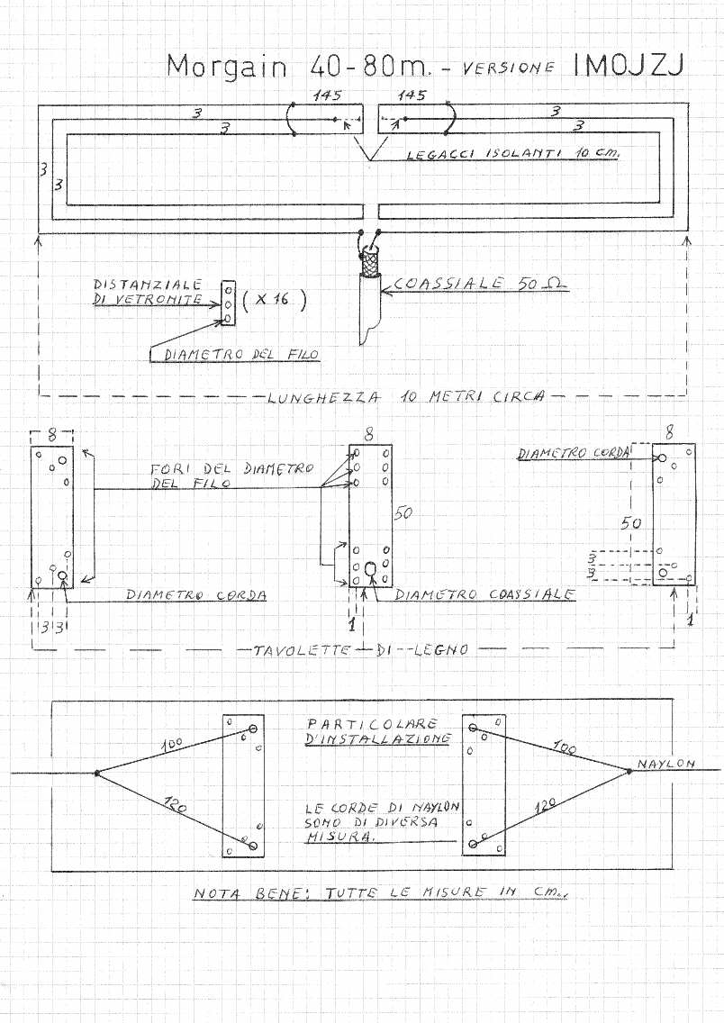 - También es interesante la autocostruccion de la antena Antenna Morgain Raccorciata 40/80 metros, por Antonio IU8CRI, en el año 2014, realizo en una "Antena dipolo bibanda 40/80m morgain doblada" o recortada, con una longitud total de 10 metros.