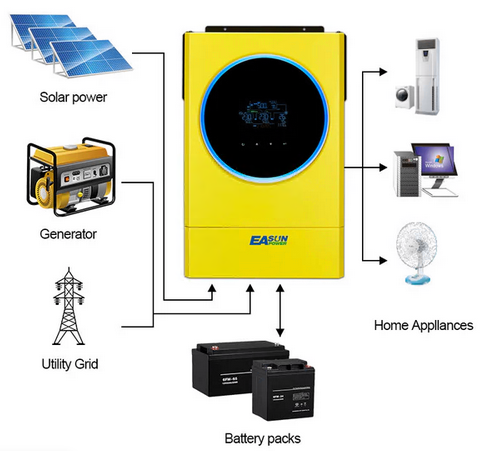 Estaba viendo ese EAsun, no es caro. Luego las baterias, creo que sí van a costar más, y los paneles, aunque puedo primero instalar el "hybrid" ese, y las baterías, y más adelante añadir los paneles.