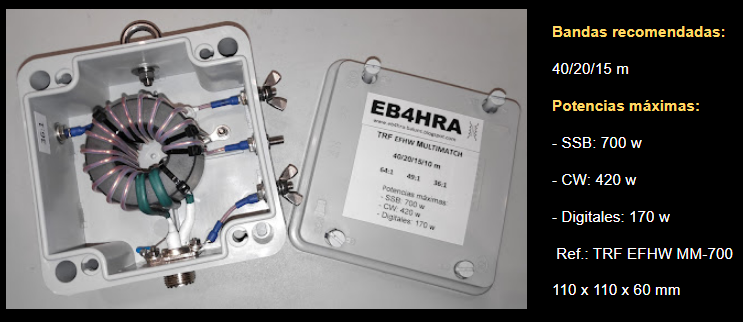 - En la web de EB4HRA dispone de TRANSFORMADOR EFHW MULTIMATCH de 64:1 , 49:1 , 36:1