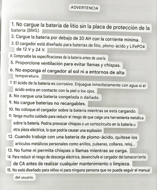 lo acabo de recibir (fotos siguientes) pero al leer las instrucciones del mismo, me surge alguna duda, porque leo en el apartado ADVERTENCIAS (foto traducción Google):