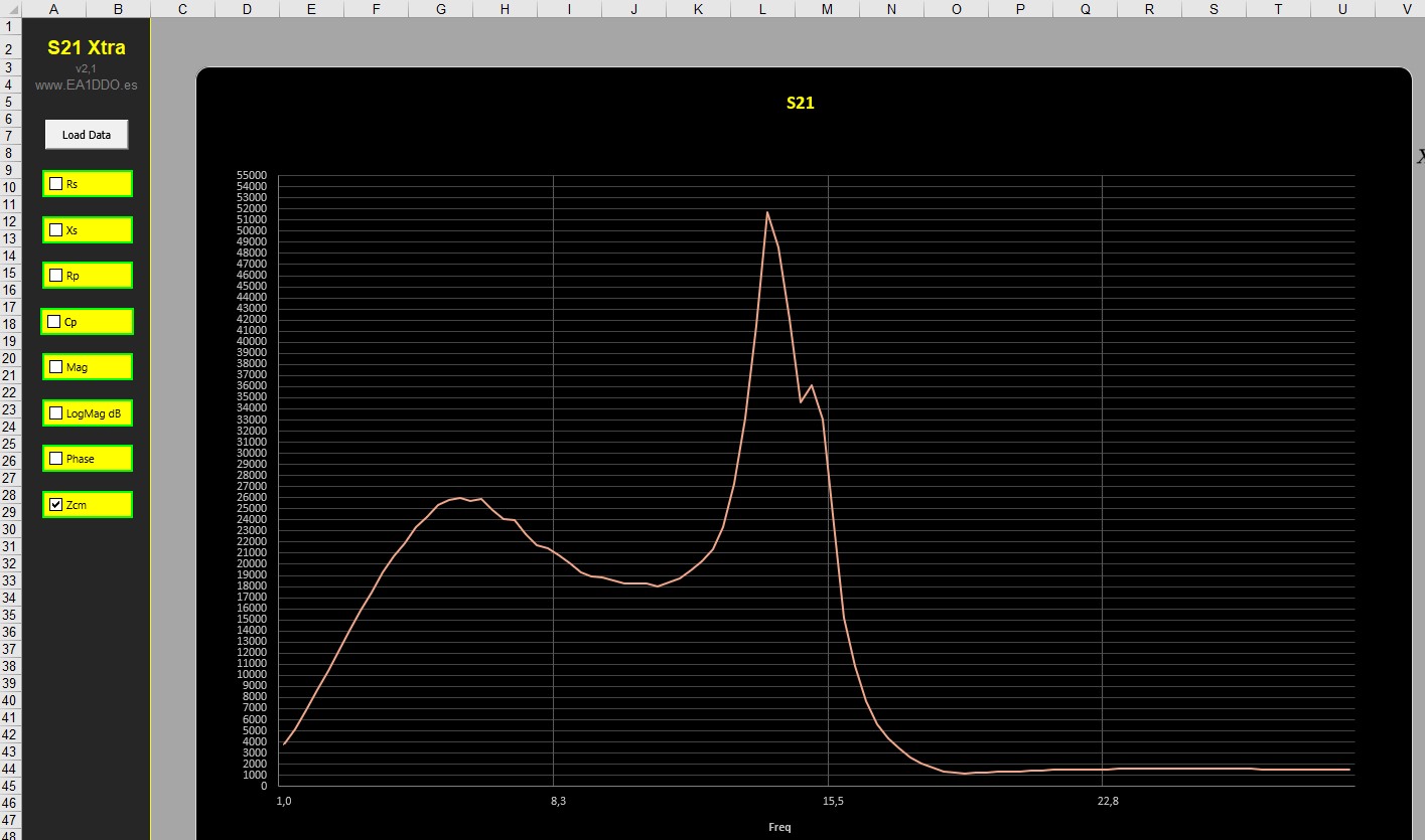 estos resultados no son logicos,por cierto ya no hace falta pasar el archivo s2p a excel, con las dos ultimas actualizaciones de nanosaver ya te da directamente la Zcm en la grafica de S21 Zseries.un saludo