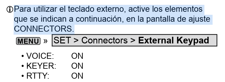 Un amigo me dice que no le funciona la consola Keypad para memorias externa en el equipo icom IC-7300