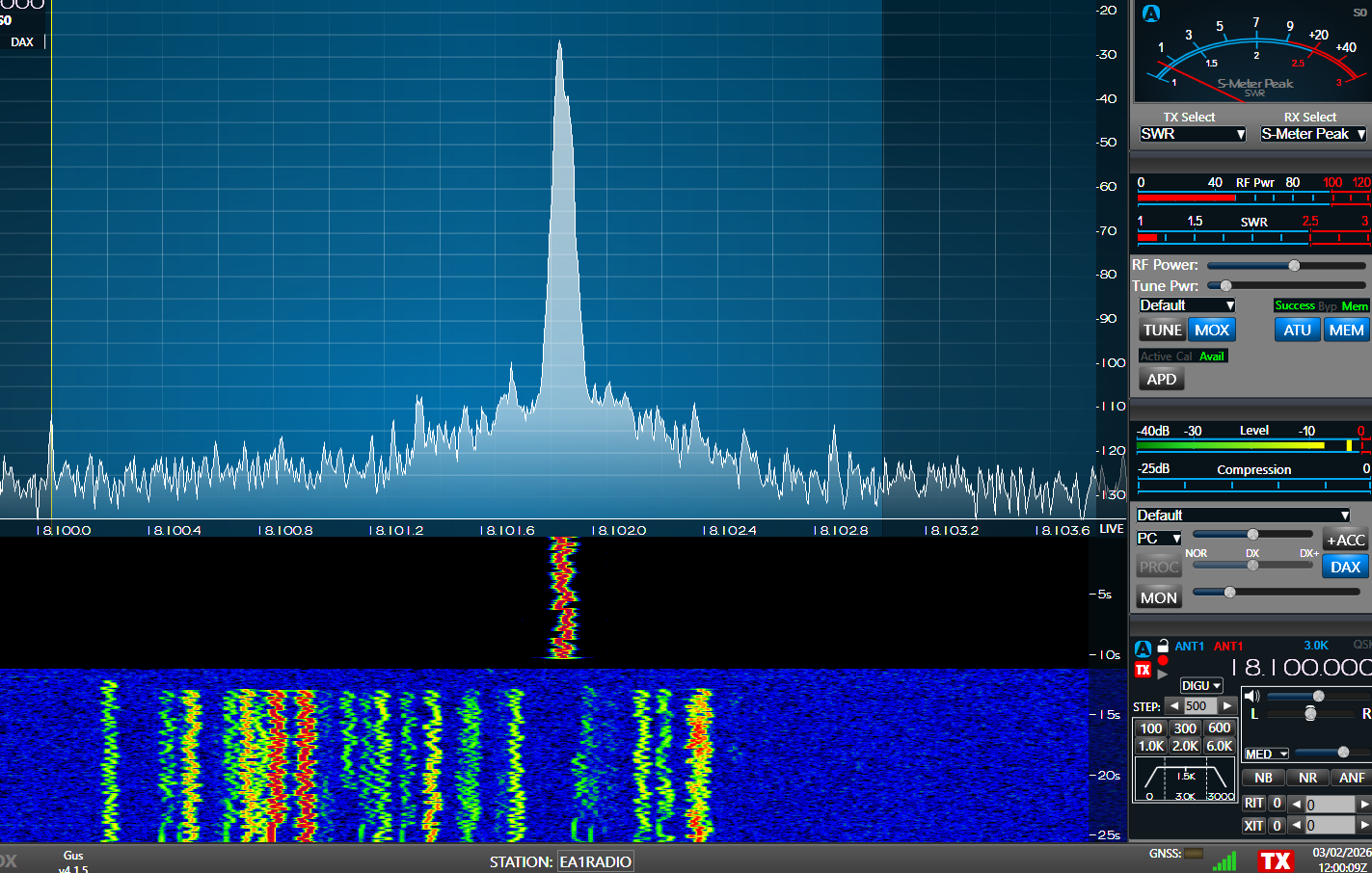 EA1R.- Si, es a eso a lo que me refiero. La señal sale muy ancha y sucia. Puede ser por los datos pero la señal del Smartlink está en verde (a veces no, se pone en rojo etc) pero el problema no cambia. De todos modos cuando lo puse en local me daba el mismo problema.