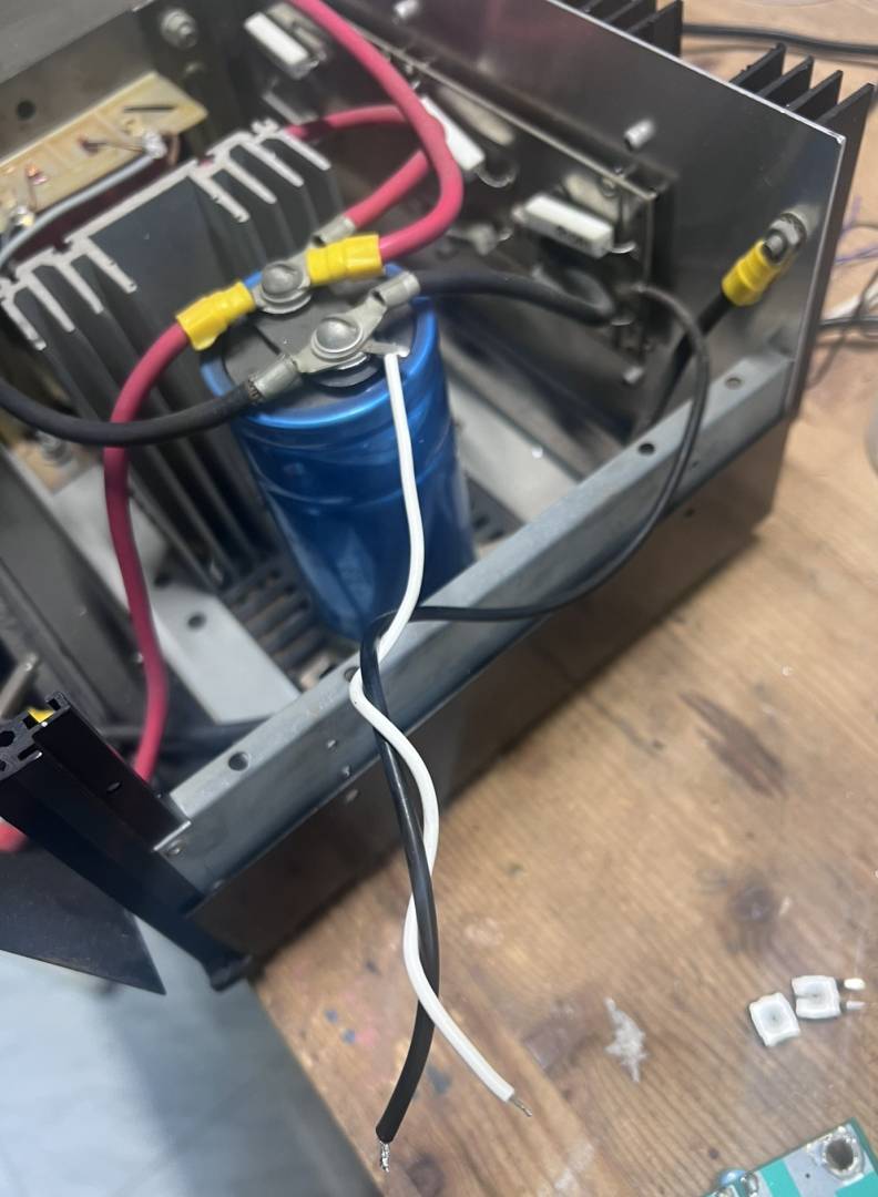 que fallaba. Ahora al ir a conectarla no recuerdo donde iban los cables negro y blanco que salen de la propia fuente y desoldé en su día de la plaquita para poder desmontarla. El negro creo que lo tengo claro pero el blanco que viene del condensador eléctrolítico no. Alguien me puede ayudar? Adjunto fotos.