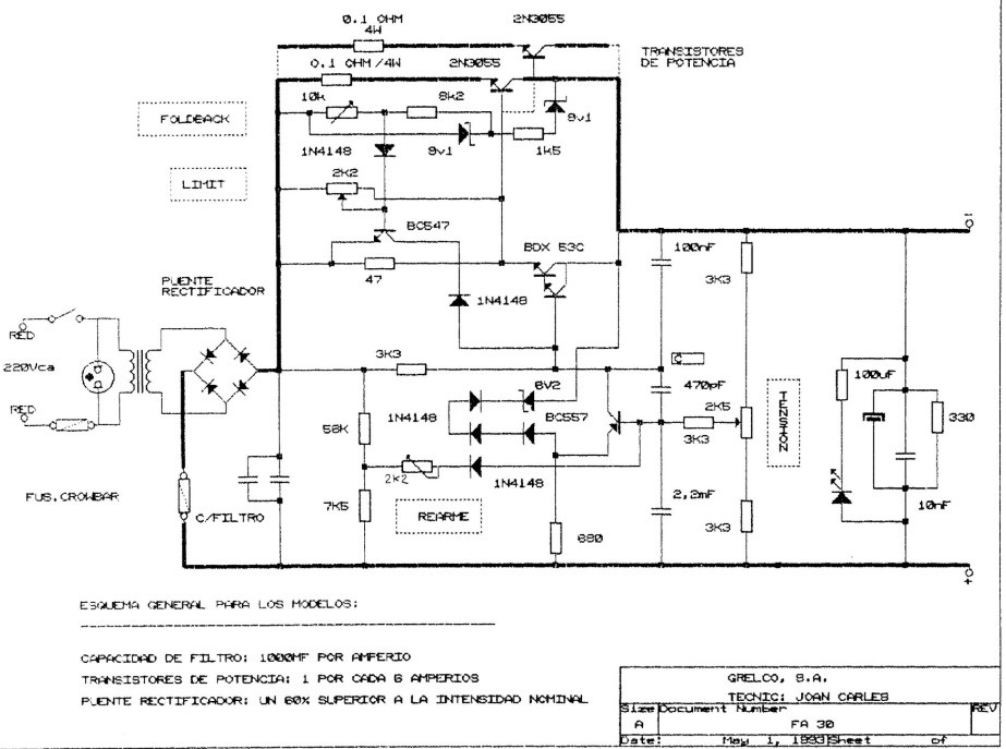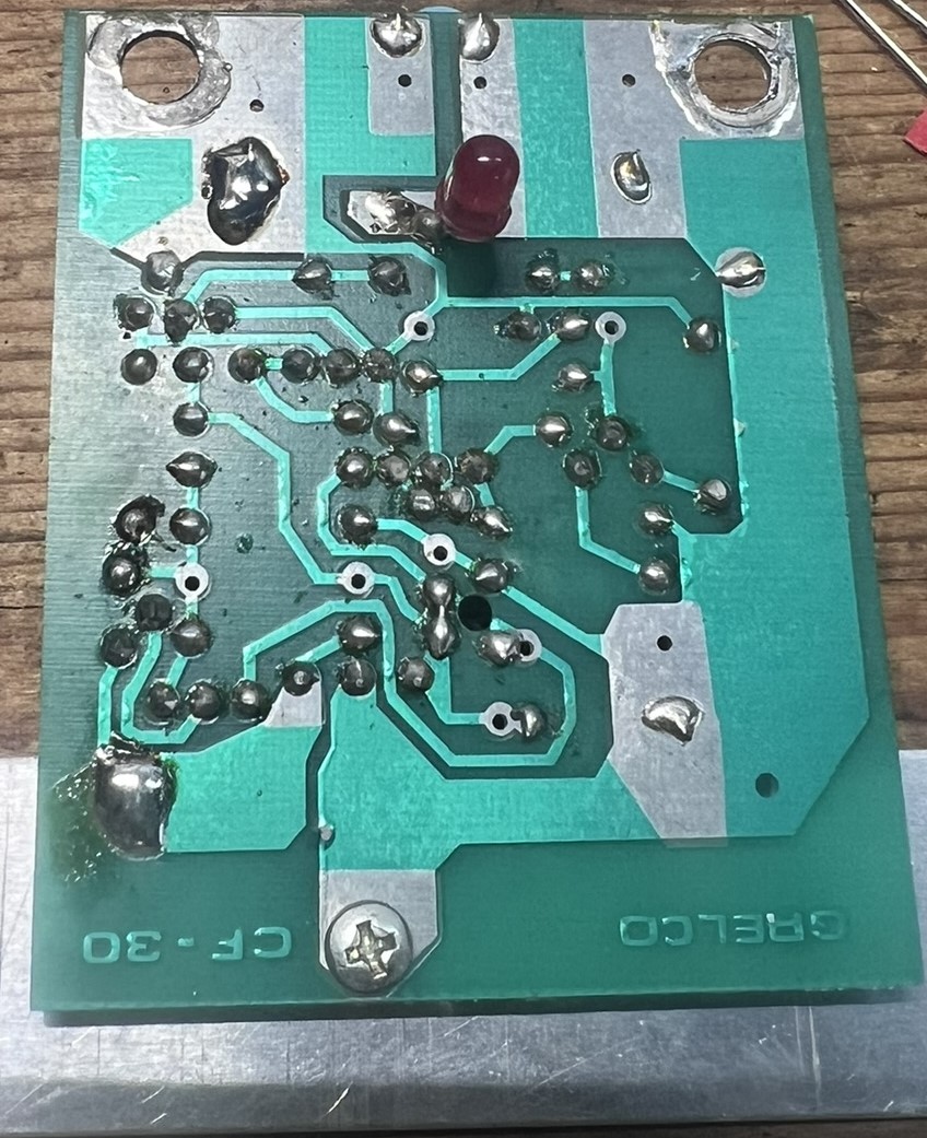 Desmonté la plaquita que regula la tensión de salida de una fuente Grelco 1330 A para cambiar un potenciometro