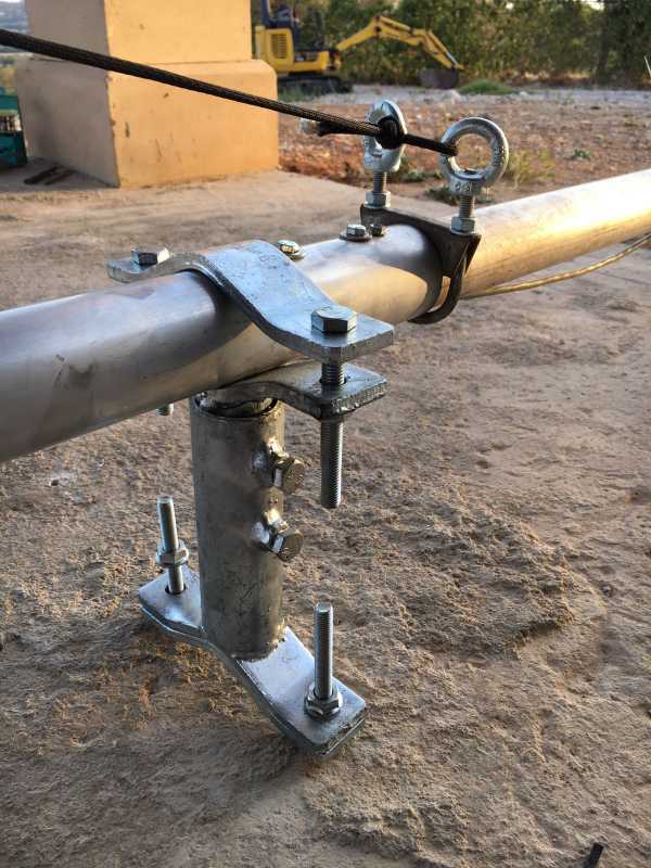 De momento no me encaja para nada la idea de meter aluminio por la complejidad a la hora de sujetar los elementos , por poco que uno se pase el aluminio queda muy debilitado y me romperá , os adjunto la situcion si lo monto en acero, alguien tiene alguna foto de como hacer la adaptacion , en VHF es muy comun usan torreta en horizontal pra la gente que hace EME , no he logrado ver de cerca como es la adaptacion al mastil , el vertice de arriba podria ser similar a la pletina de un boom normal pero la separacion de abajo no, otra cosa es que se puede montar como dijo maximo ( a dos aguas) eso me complica bastante, por un lado podria montar los elementos abajo , en la parte plana, pero por otro lado los refuerzos de la DB36 quedarian sin tner ningun sentido y no se hasta que punto los EHU de steppir estan pensados para ir boca abajo.