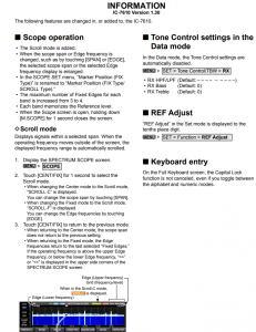 Pues yo ya he actualizado y perfecto!!! La nueva actualización trae la mejora de Scroll en el Scope que al mantener 1 seg. pulsada la opcion del menú CENT/FIX del waterfull se accede a varios modos de Scroll en el waterfull Scroll C y Scroll F al igual que se actualizó en el Icom 9700 pero mejorado.