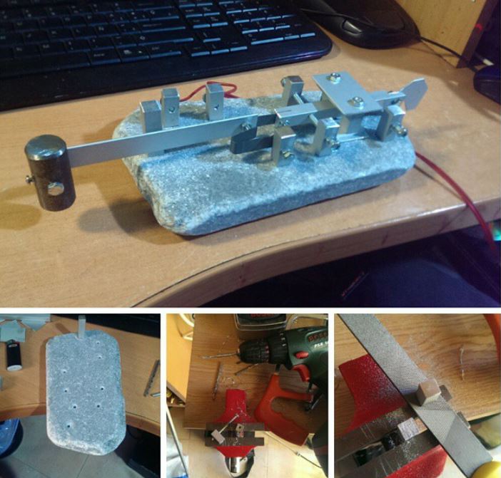 Felicidades a todos por esas más que buenas manualidades. Yo lo más que he conseguido, y de eso hace ya muchos años, fue hacer una tosca base al Vibroplex que veis en la foto (me lo regalaron sin ella). A ver si a la vista de vuestros trabajos me animo y le construyo una decente, que se lo merece.