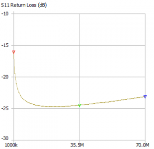 Si quieres, pon un trimmer de 100pF en paralelo con los rabillos del BALUN y sigue midiendo con ellos, verás que conseguirás un ajuste que incluso podrás optimizar mejor el ancho de banda.