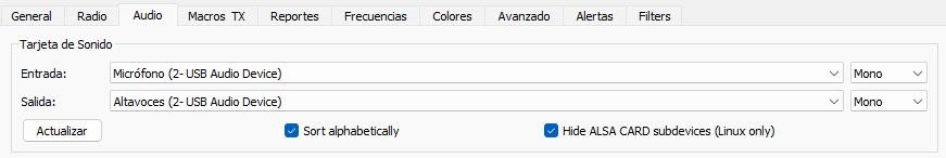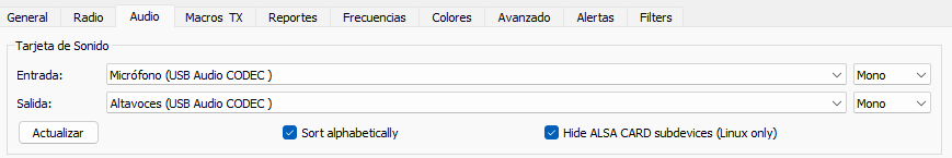 La entrada y salida de audio la he actualizado de: