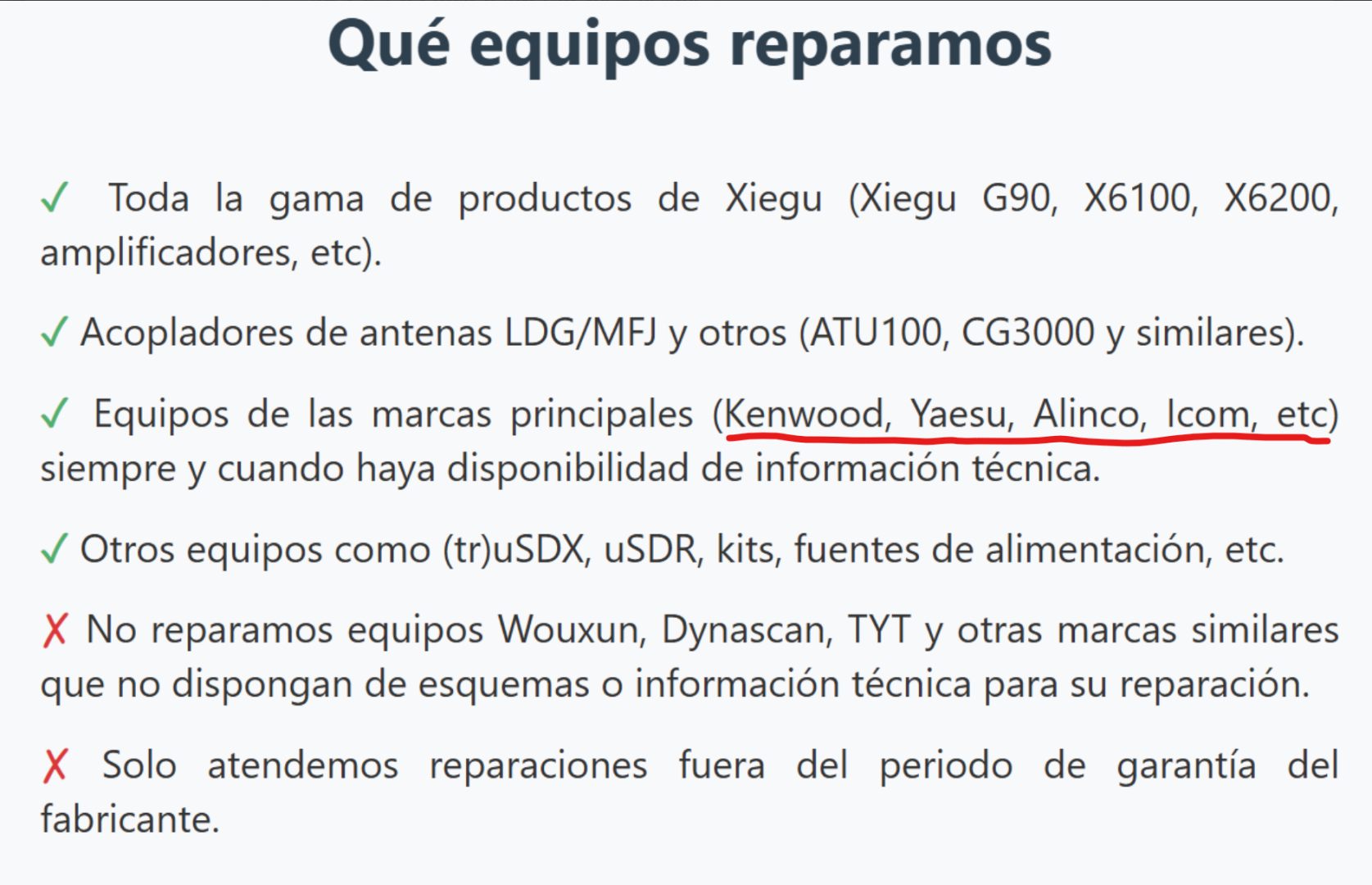 Juan Carlos te lo confirmará, pero no solo reparan Xiegu, reparan casi todas las marcas;